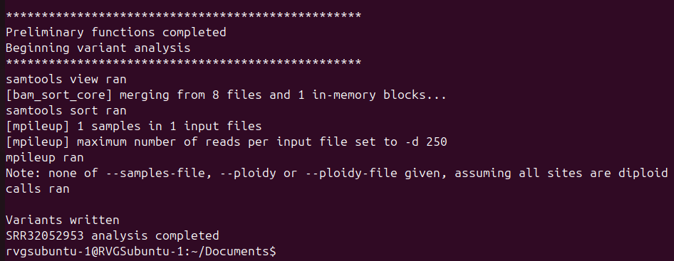 Picture above is the Linux Ubuntu terminal running the “AML” program. This specific process wrote the variants to a .VCF file that were then analyzed in post-development